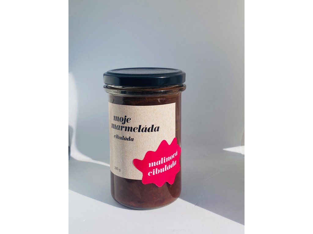 Složení: Cibule, maliny, balsamico ocet, třtinový cukr, olej, tymián, sůl a pepř.